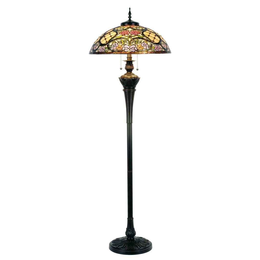 Stylowa, podłogowa lampa witrażowa TIFFANY w kolorowe kwiaty od Clayre & Eef.