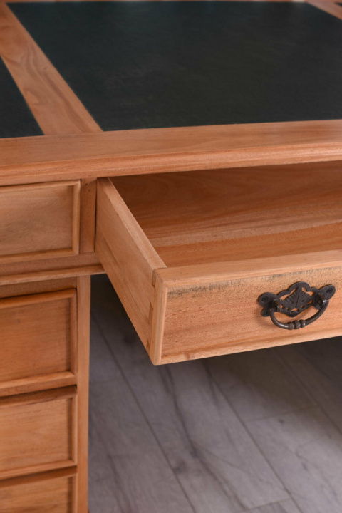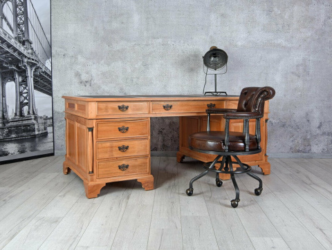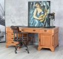 Wykonane w całości z drewna mahoniowego i pomalowane na odcień średniego dębu. Jest meblem niezwykle dekoracyjnym i wspaniale odnajdzie się w stylowym wnętrzu. Dopełnieniem tego wyjątkowego mebla są przepiękne uchwyty, doskonale korespondujące z jego charakterem. Biurko posiada sześć szuflad i duży schowek.