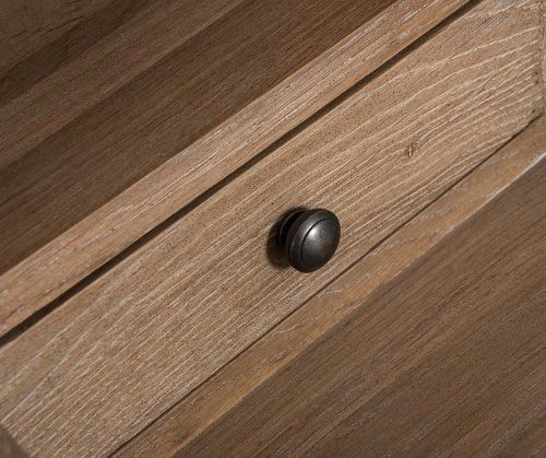 Mebel posiada trzy szuflady pod blatem i dwie w górnej części. Każdą z nich zdobi stylowa, metalowa gałka.