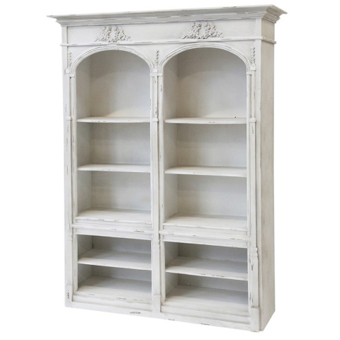 Zjawiskowe wykończenie w stylu shabby chic, postarzane ornamenty, dekoracyjne łuki i frezowane gzymsy, to wszystko to, co składa się na zachwycający i nietuzinkowy styl tego wyjątkowego mebla. Jest to użytkowa ozdoba wnętrza, która zaczaruje Twoją przestrzeń swoim romantycznym charakterem. Regał wspaniały na książki, dekoracje, fotografie i rośliny. Odnajdzie się we wnętrzach vintage, prowansalskich, shabby i farmhouse style.