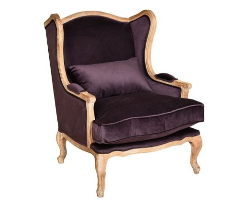 Stylowy tapicerowany fotel bakłażan CLASSIC Belldeco 1