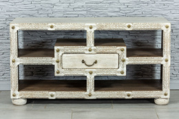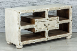 Bogata oferta szafek RTV, dostępnych w naszym sklepie, obejmuje różnorodne modele, także ręcznie wykonane w Indiach. W ofercie drewniane szafki loftowe, industrialne, nowoczesna komoda pod telewizor, prowansalska szafka RTV. Wiele modeli naszych szafek pod telewizor, posiada przecierki i odpryski, w celu uzyskania modnego w ostatnim czasie efektu postarzenia. Meble z naszych kolekcji, wykonane są z dbałością o każdy szczegół.