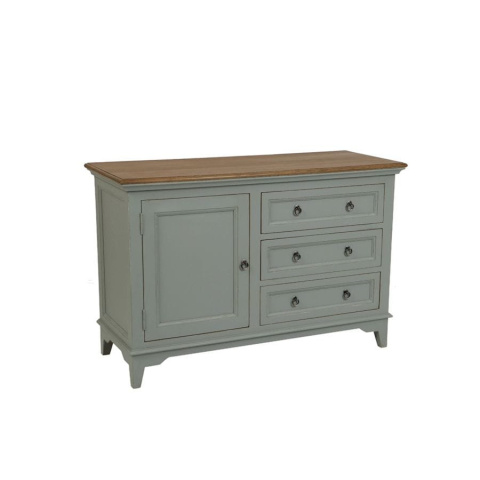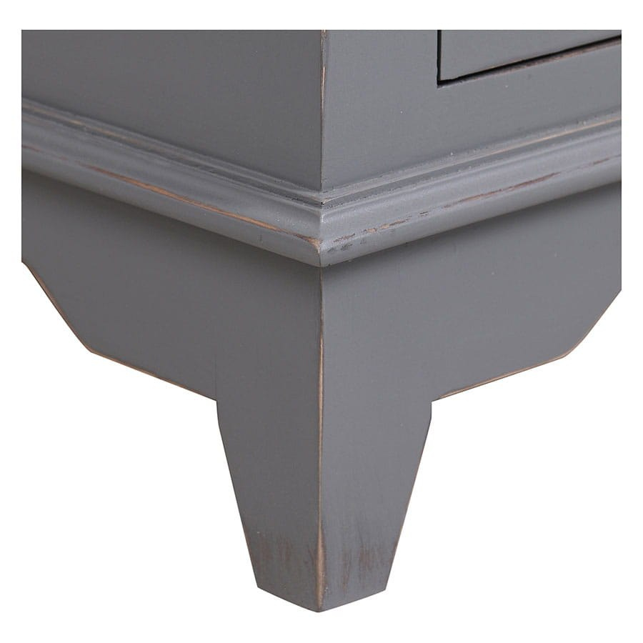 Komoda ma jasny drewniany blat, a korpus w kolorze szarym przecieranym. Mebel posiada trzy szuflady i szafkę z półką ze stylowymi ozdobnymi metalowymi uchwytami. Styl prowansalski we wnętrzach jest wciąż popularny i nie zapowiada się żeby wyszedł z mody. Kojarzony ze słońcem, zapachem lawendy i wakacyjnym klimatem, styl prowansalski daje we wnętrzach poczucie swobody i relaksu.