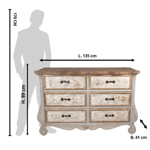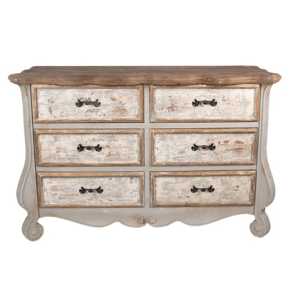 Szara postarzana komoda Clayre & Eef sześć szuflad