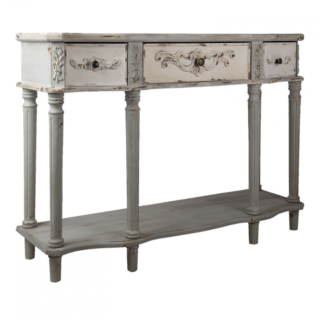 Piękna, postarzana konsola shabby chic z szufladami od Clayre & Eef.