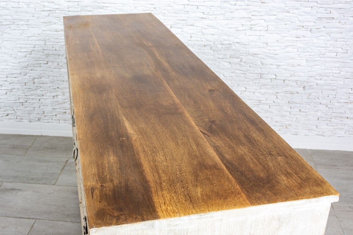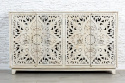 Szeroka biała komoda indyjska z rzeźbionymi frontami