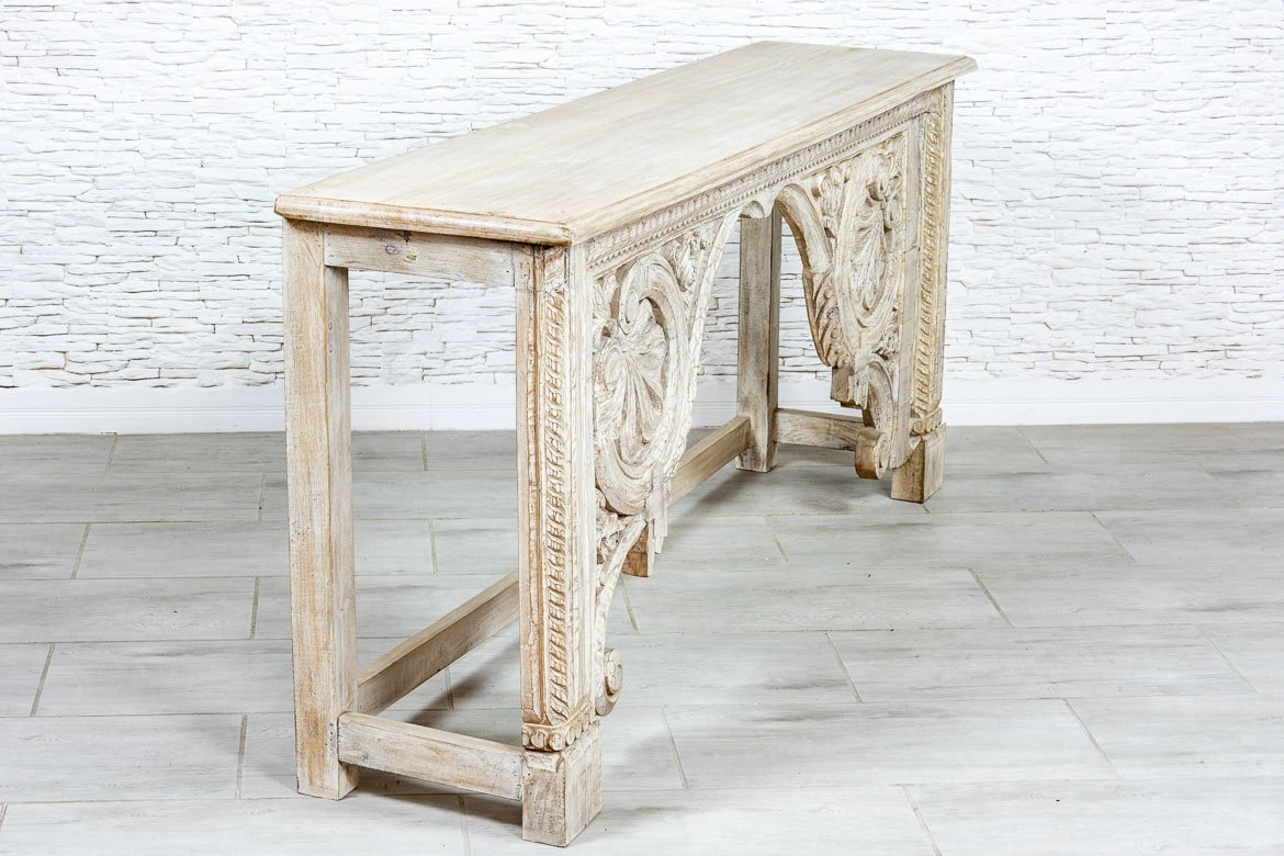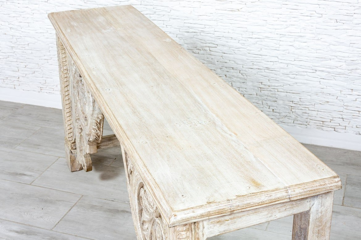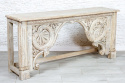 Szeroka bielona konsola z Indii z rzeźbionym frontem