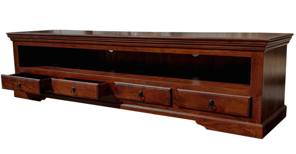 Duża, klasyczna indyjska komoda RTV z szufladami.