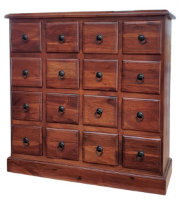 Szafka wykonana w Indiach z litego drewna akacji indyjskiej. Mebel wyjątkowo solidny i stabilny, wybarwiony na odcień ciepłego brązu. Na całej długości mebel posiada obszerną półkę oraz cztery szuflady. Fronty z ozdobnymi kolonialnymi uchwytami, sprawiają, że mebel prezentuje się wyjątkowo elegancko.