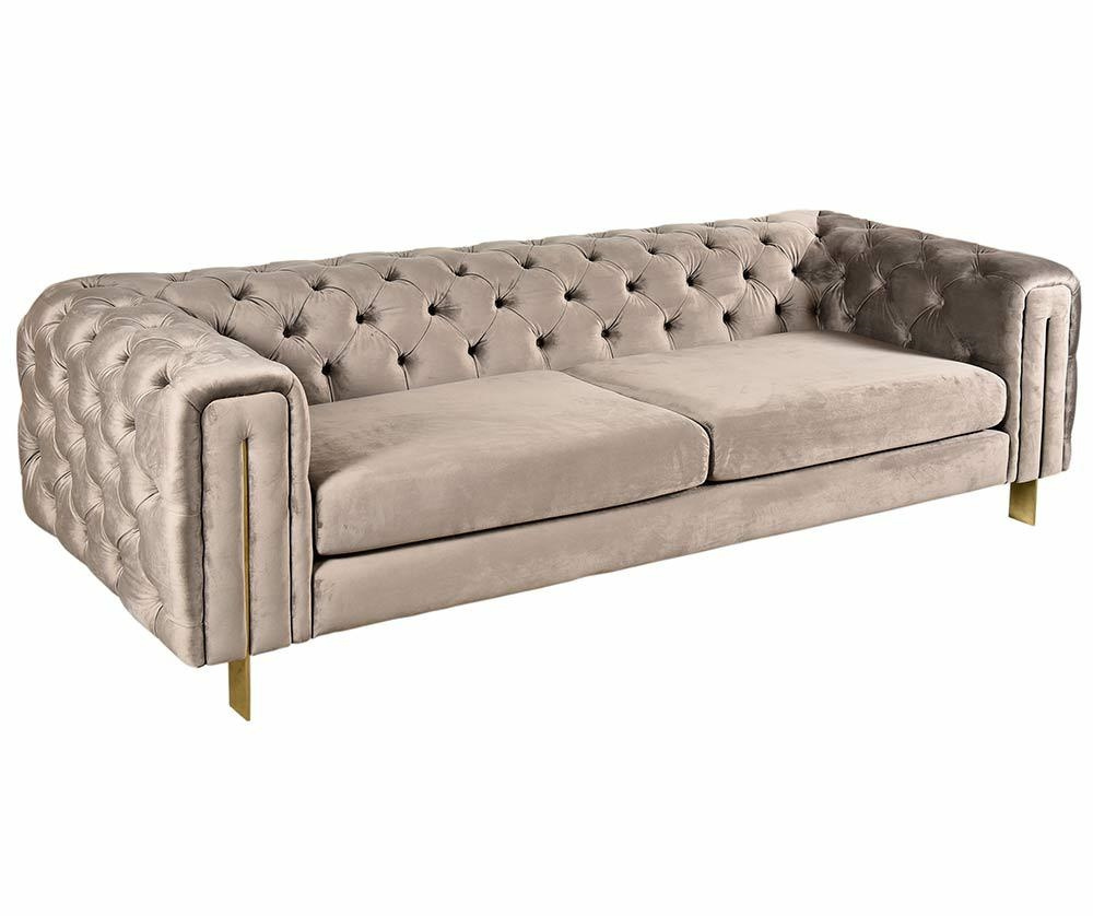 Szeroka pikowana sofa na złotych nóżkach GLAMOUR Belldeco