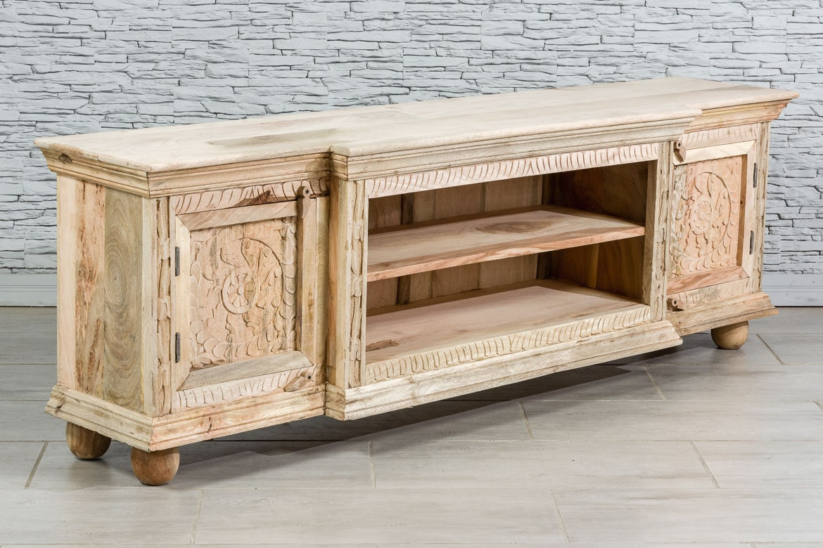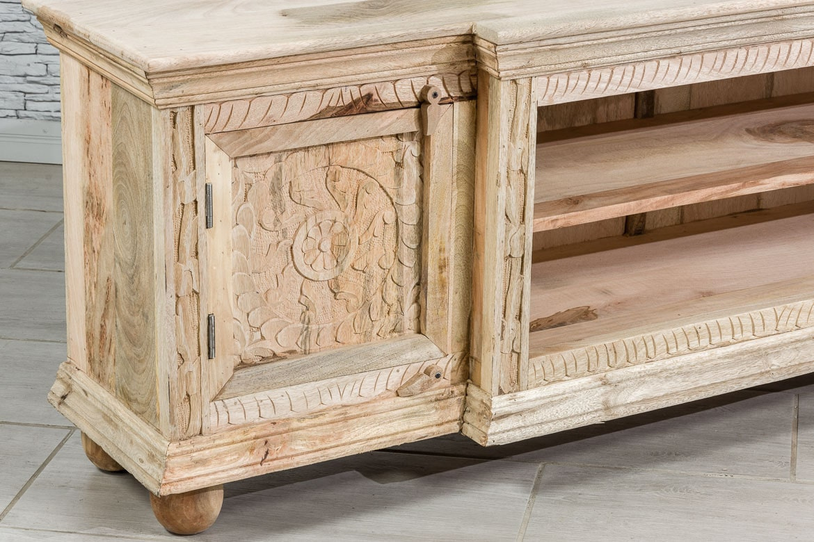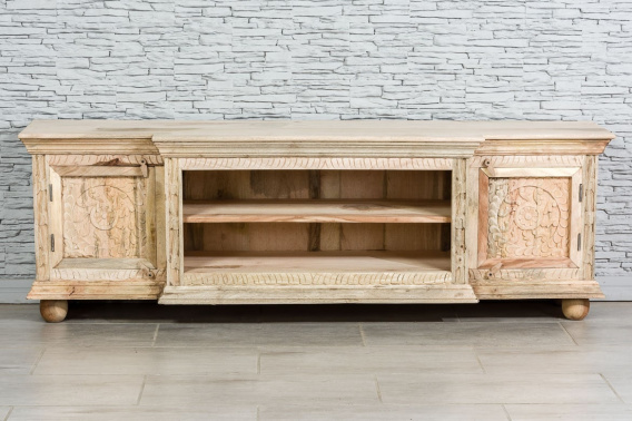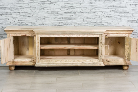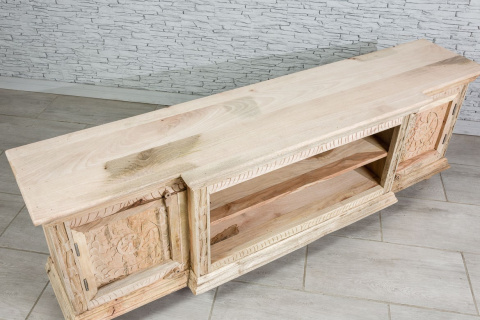 Szeroka rzeźbiona indyjska szafka RTV surowe mango