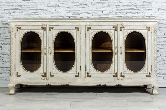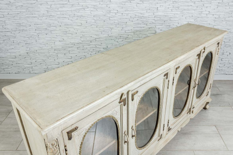 Szeroka szara komoda indyjska ze szklanymi frontami
