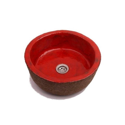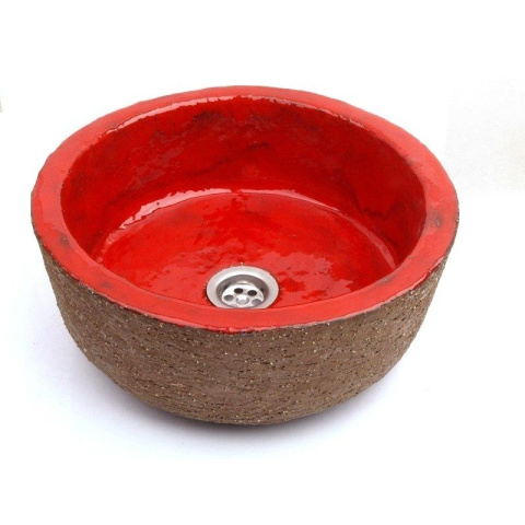 Umywalka ceramiczna czerwona rustykalna rękodzieło