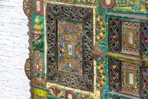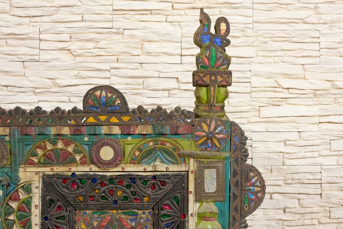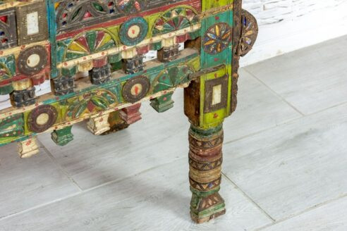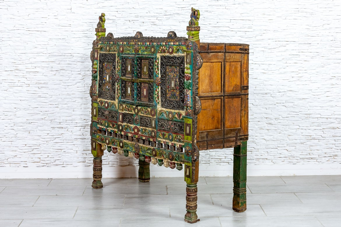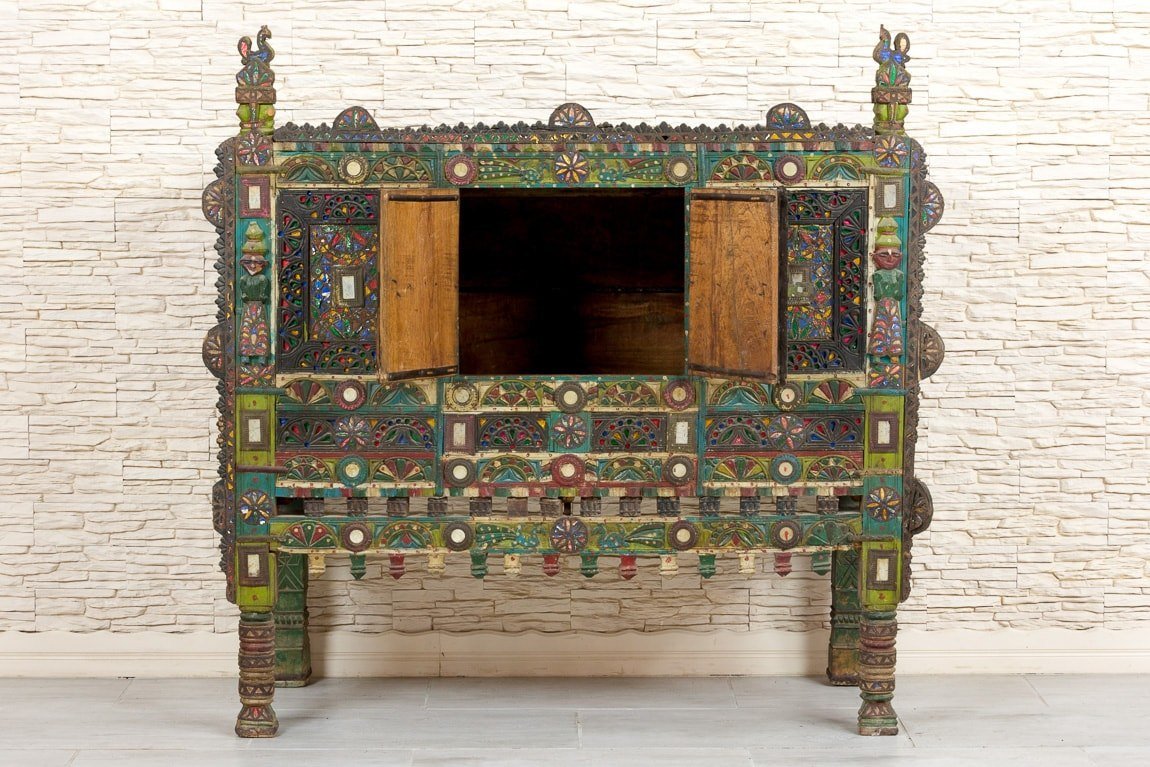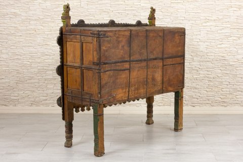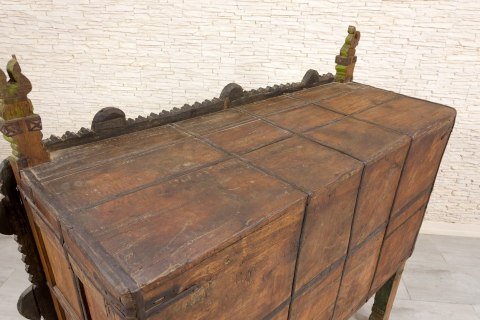 Zjawiskowa, unikalna damchia tybetańska, ozdobna mieniąca się różnymi kolorami. Wykonana ręcznie, w całości z drewna tekowego. Komoda posiada wewnętrzną skrytkę. Ten niezwykły, zabytkowy mebel dekoracyjny zachwyci miłośników orientu.