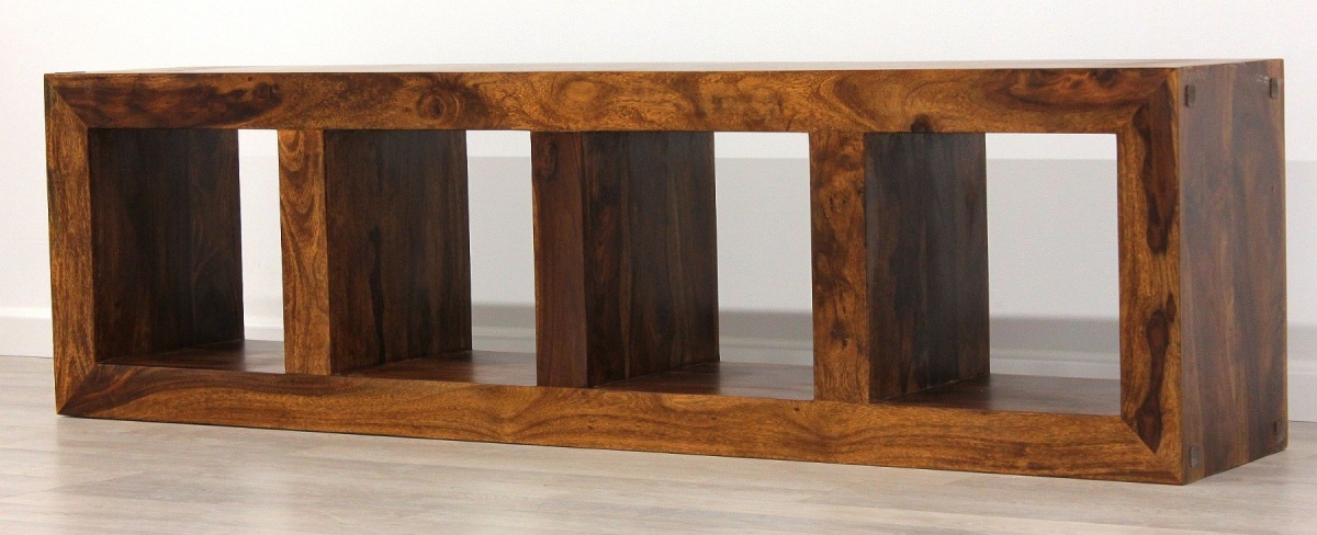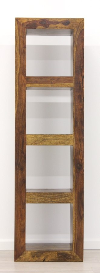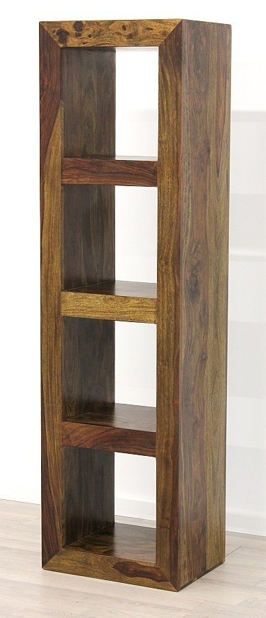 Nowoczesny, wąski regał drewniany z serii MODERN CUBE. Regał w minimalistycznym stylu, wykonany z drewna palisandru indyjskiego, które jest drzewem długowiecznym, a meble które z niego powstają cechuje niezwykła odporność na czynniki zewnętrzne. Regał z serii modułowej MODERN CUBE. Mebel, który możesz ustawić pionowo lub poziomo, a także połączyć z innymi modelami z tej kolekcji, tworząc w swoim wnętrzu unikalną aranżację. Doskonale sprawdzi się jako szafka RTV w nowoczesnej przestrzeni.