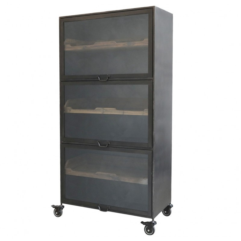 Metalowa, industrialna witryna na kółkach FACTORY marki Chic Antique.