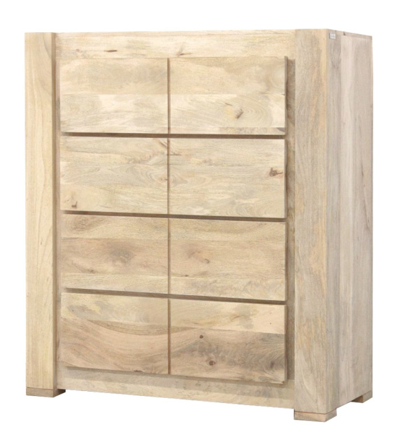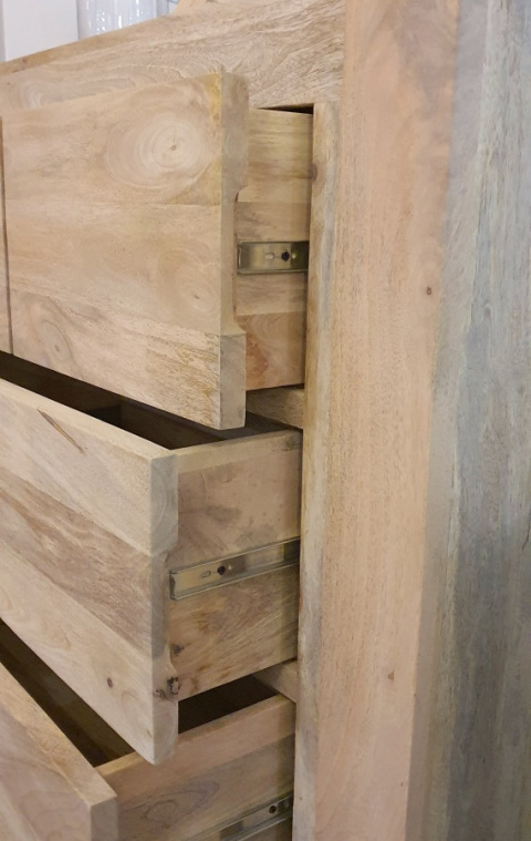 Stylowa, drewniana komoda z szufladami z Indii, wykonana w malej manufakturze. Faktura egzotycznego drewna sprawia, że mimo swojej prostej formy, jest bardzo oryginalna. Komoda wykonana w całości z litego drewna w kolorze naturalnego mango oraz wykończona lakierem wodnym matowym. Z pewnością sprawdzi się w eleganckim wnętrzu i zadowoli najbardziej wymagającego użytkownika. Łączy w sobie funkcjonalność i dobry styl.