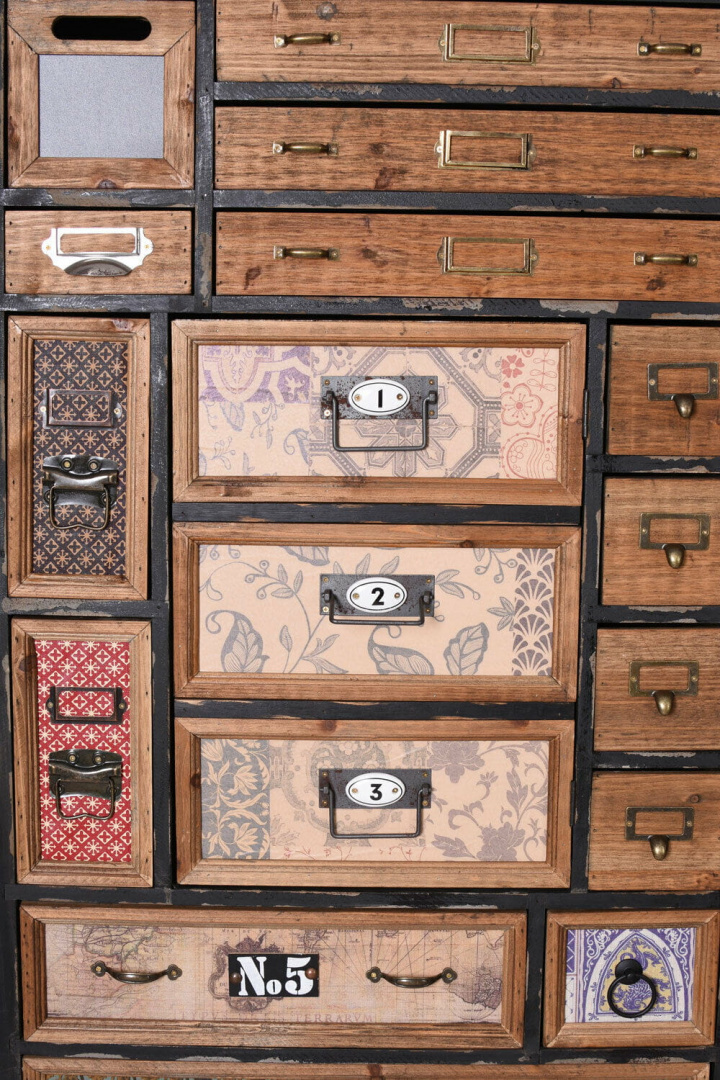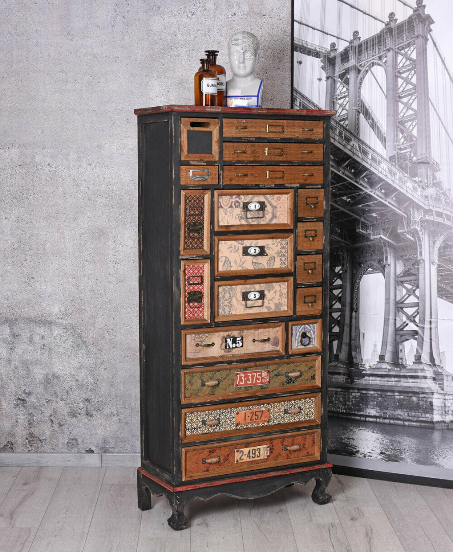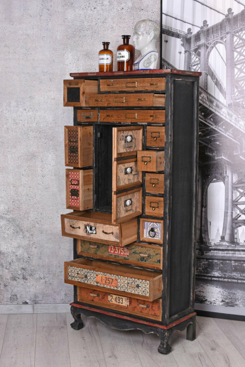 Ta designerska komoda odnajdzie się w każdym pomieszczeniu klimatycznego wnętrza. Posiada aż dziewiętnaście szuflad różnej wielkości.