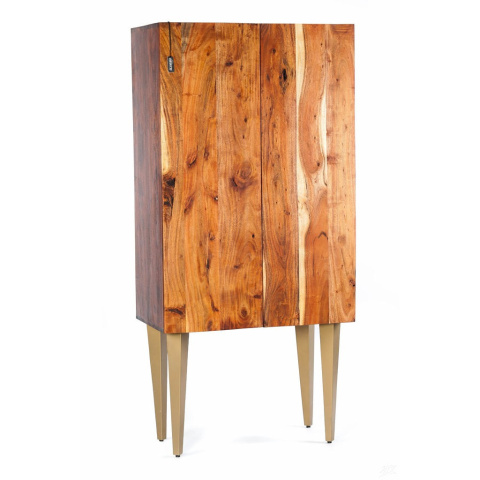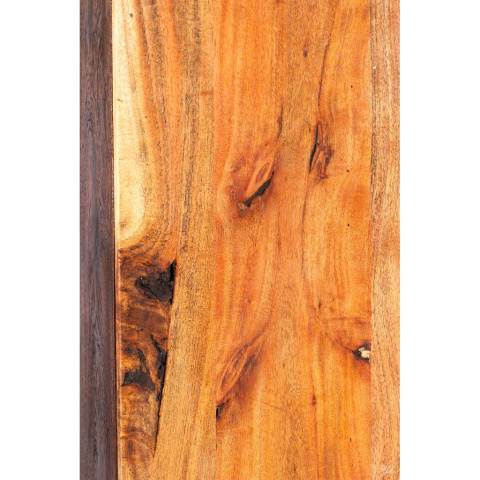 Wysoka, modernistyczna drewniana komoda na nóżkach marki ALURO. Ta komoda retro została wykonana z drewna z recyklingu, możliwe przetarcia i rysy. Ten niezwykły mebel oddaje hołd stylowi z lat 60-tych i 70-tych. Łączy w sobie styl retro i wysmakowany modernizm. Komodę wykonano z drewna akacji indyjskiej i żelaza. Wysokie nóżki wysmuklają potężną całość i dodają meblowi oryginalności. Niezwykły kształt i kolor komody spersonalizuje Twoje wnętrze i muśnie je stylem jak z dawnych lat.
