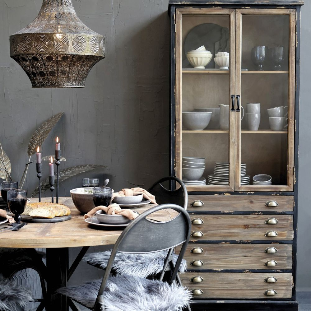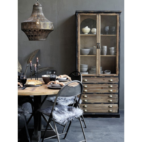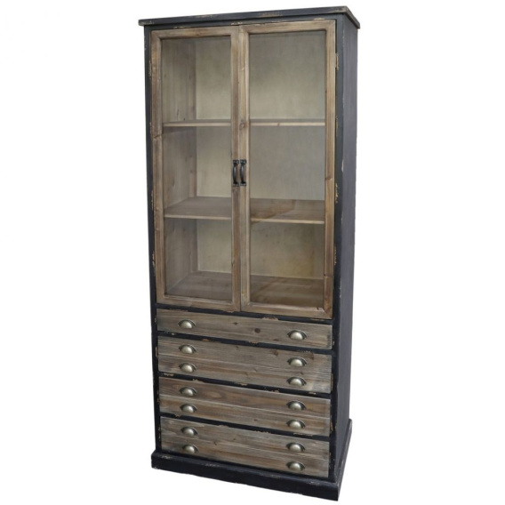 Designerska drewniana witryna vintage to mebel, który wprowadzi do wnętrza klimat retro i industrialny. Witryna w stylu vintage o niezwykle oryginalnym designie, który połączono z funkcjonalnością. Witryna wykonana jest z drewna, a jej powierzchnia została specjalnie postarzona, co nadaje jej wygląd zabytkowego mebla. Mebel posiada szuflady i półki za przeszklonymi frontami. co umożliwia wyeksponowanie przechowywanych w niej przedmiotów. Może to być zbiór książek, pamiątek czy ozdób.