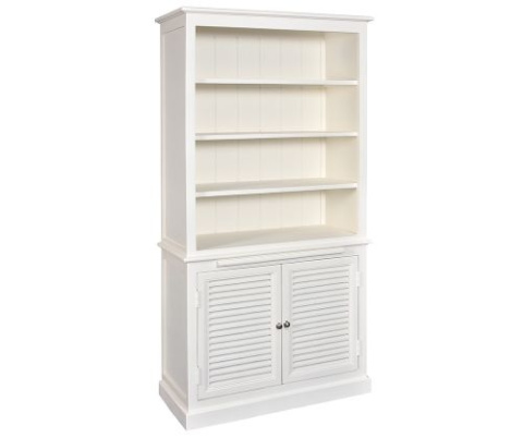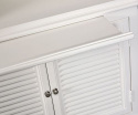Wysoki, klasyczny regał drewniany od Belldeco, w odcieniu czystej bieli. Ten niezwykły mebel zachwyca stylem, jakością wykonania i funkcjonalnością. Wysokiej klasy surowce, których użyto do jego produkcji sprawiają, że robi ona niezwykłe wrażenie. Jest dopracowany w każdym calu. Posiada otwarte półki i pojemny schowek, ukryty za ażurowymi frontami typu shutters. Mebel dedykowany jasnym, przestronnym wnętrzom. Odnajdzie się zarówno w salonie, jak i w bibliotece czy słonecznej jadalni.