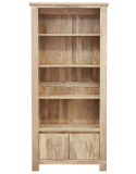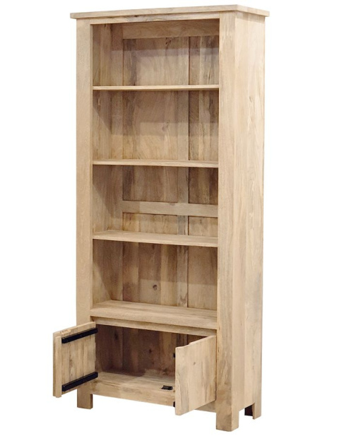 Prosty, wysoki regał, wykonany ręcznie w Indiach z drewna mango w jego naturalnym kolorze.