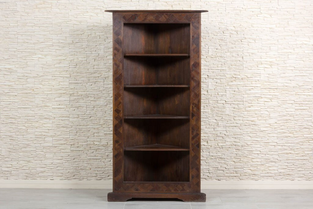 Wysoki regał narożny z półkami z indii.